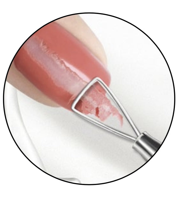 Neglebåndsskyveren er ideell å bruke i prosessen når du skal fjerne acetonoppløselig kunstnegl. Etterhvert som kunstneglen løser seg opp i den hudvennlige acetonen, kan du skrape bort oppløst materiale slik at fjerneprosessen går raskere.