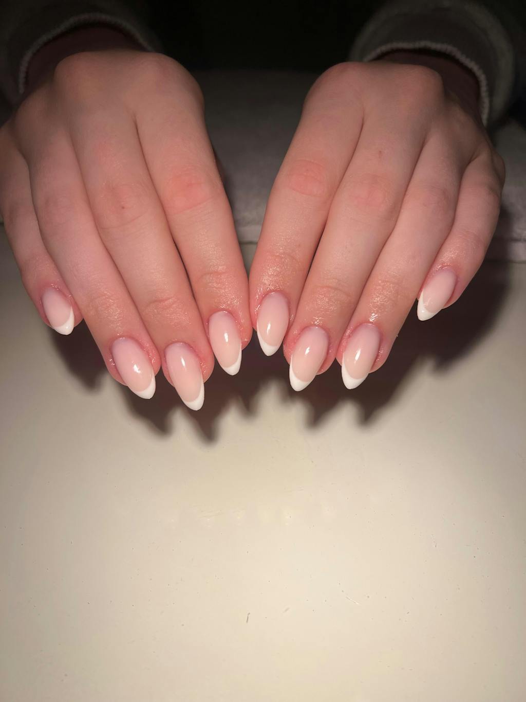 Husk å bruke neglebåndsolje og fuktighetskrem for å holde kunstneglene og hud og naturnegler sunne og unngå at kunstneglene blir sprø. Påfør neglebåndsolje også på undersiden av negletippen.