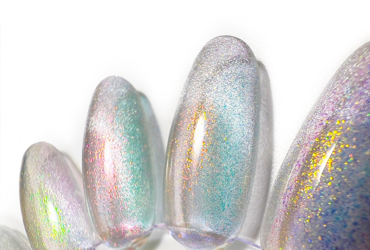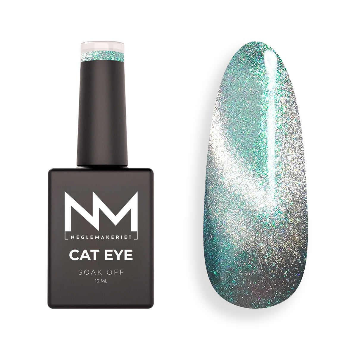 UNICORN CAT EYE fra Neglemakeriet er en magisk lekker gelelakk med cat eye-effekt. Den er transparent og kan legges over alle andre baser og farger, men effekten er nydelig selv på helt klar base. Unicorn Cat Eye er glitrende og metallisk, og endrer seg ut i fra vinkel og lysforhold. Det unike mønsteret oppstår ved bruk av magnet, og du kan fritt forme mønsteret slik du selv ønsker, alt etter hvor du plasserer magneten over neglen. Når du har oppnådd ønsket effekt, herder du den raskt, slik at du fikserer det magnetiske pulveret. Glittereffekten vil trekke seg mot magneten, og du kan lage et mangfold av forskjellige mønster, ut i fra hvor nærme du holder magneten, og hvordan du vinkler den. Glitter vil dekke hele neglen, kun det magnetiske glitteret vil trekkes mot magneten.
