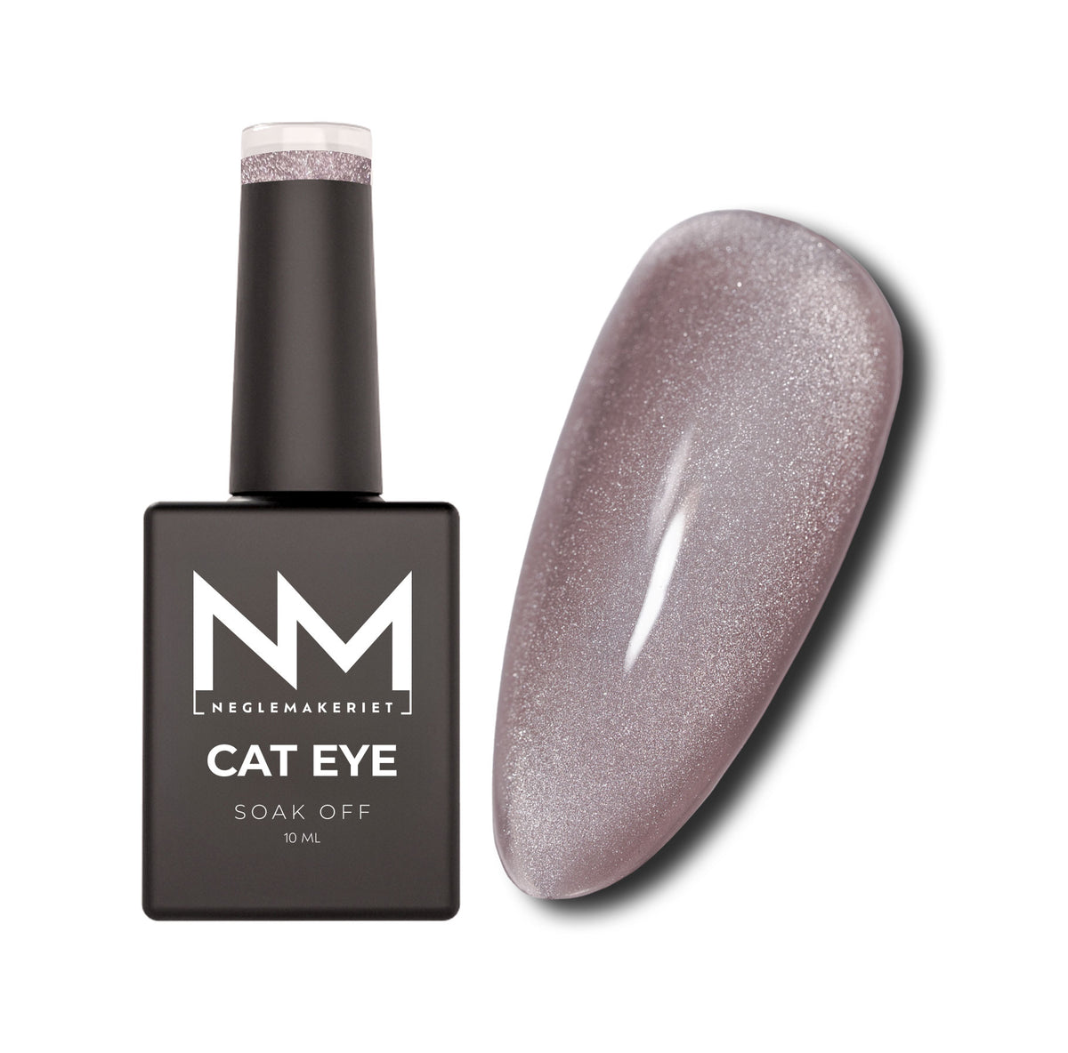 PEARL CAT EYE fra Neglemakeriet er en mykere skimmereffekt som lages ved hjelp av en magnet. Den har sin egen basefarge, og trenger derfor ingen annen farge under. Den er likevel semitransparent, og kan legges med en nærliggende fargetone under, dersom du ønsker at den skal være 100% dekkende, men den vil virkelig skinne for seg selv. Du kan også prøve den over sort base!
