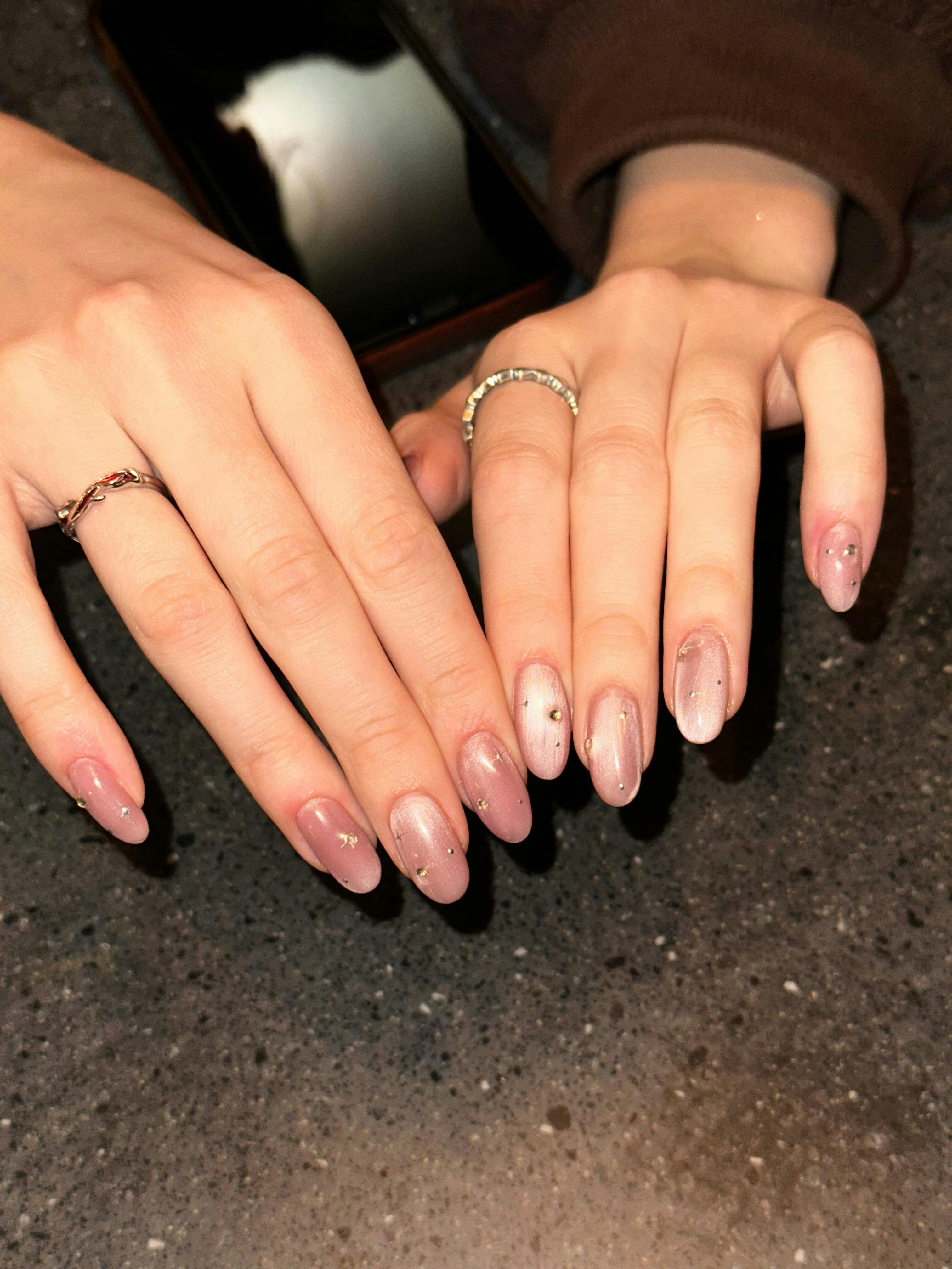 ⁠Lagt sammen med annen kunstnegl, som for eksempel: