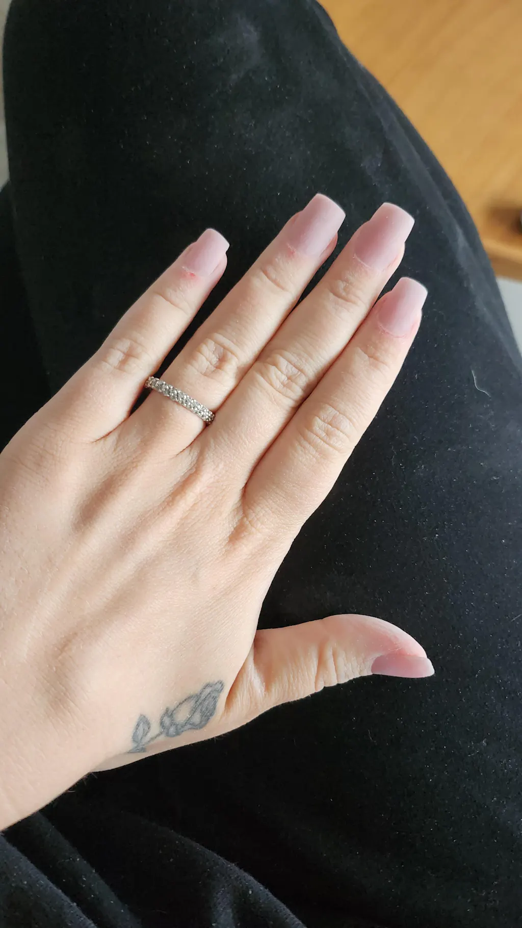 Farge: Dempet nude rosa.